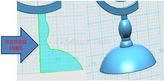 ,旋轉(zhuǎn)軸線選擇草圖的豎線,旋轉(zhuǎn)角度360度。