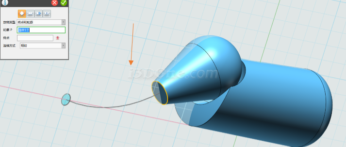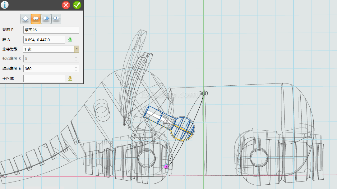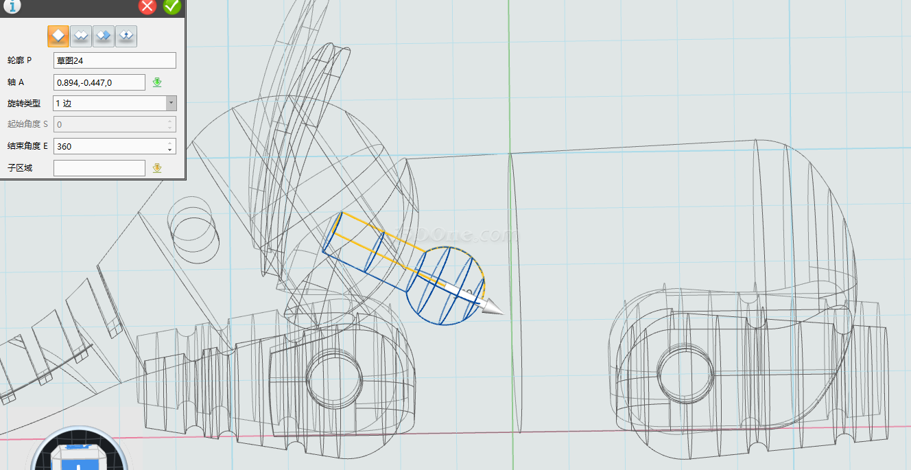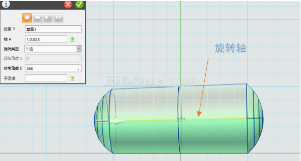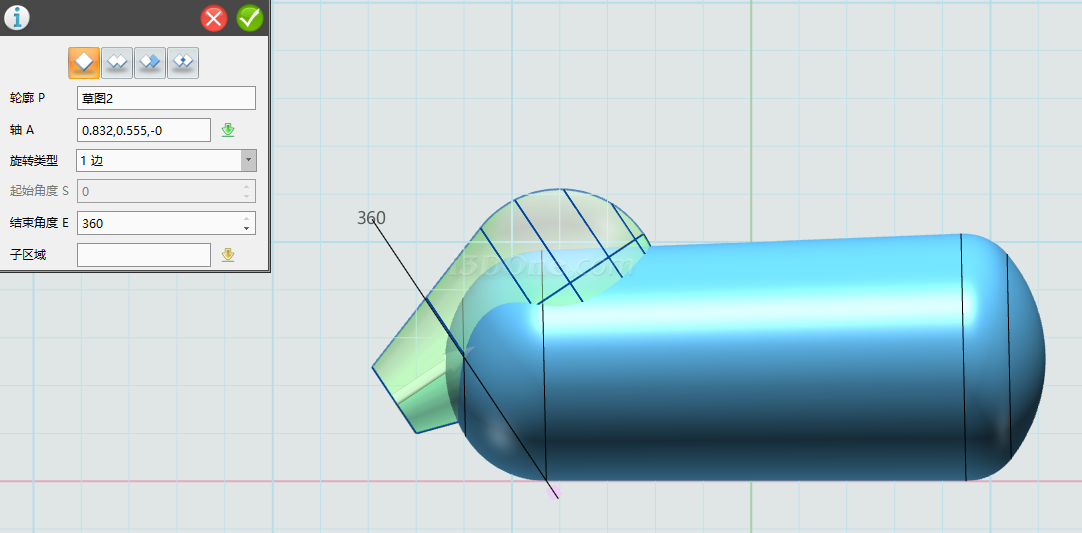 繪制完草圖,選擇旋轉命令,選擇草圖,如圖: