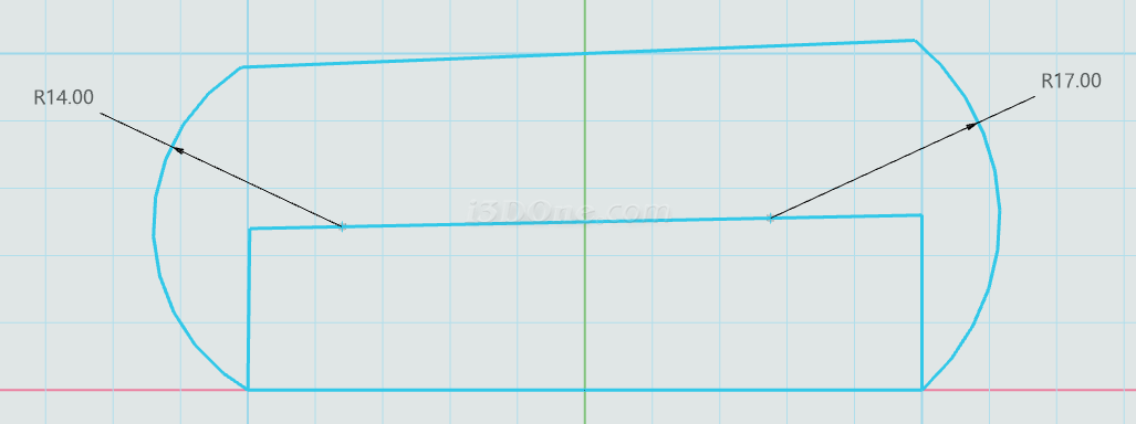選擇圓角命令,在如圖所示位置添加圓角,圓角大小為3,(對稱位置也要添加)如圖: