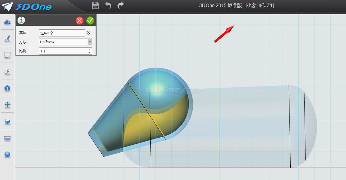縮放頭部,選擇縮放命令,實體選擇一個頭部實體,縮放比例選擇1.1