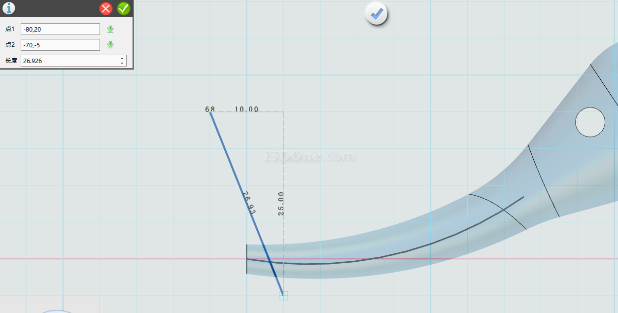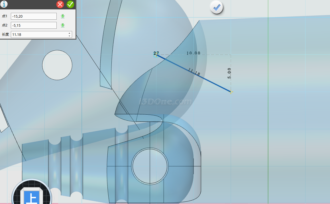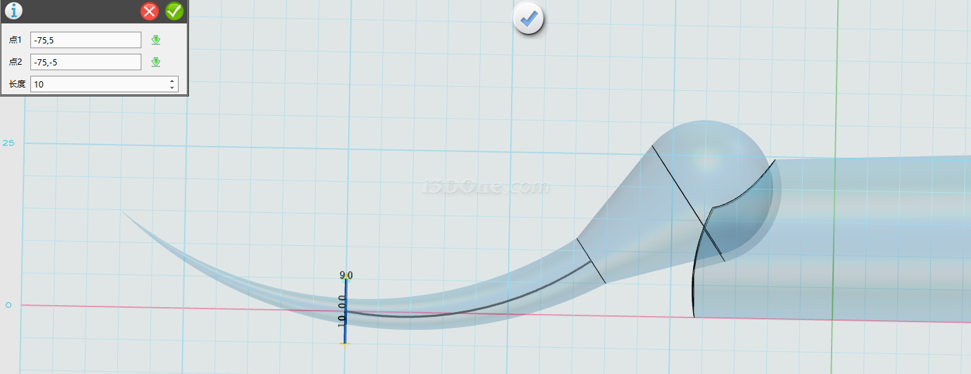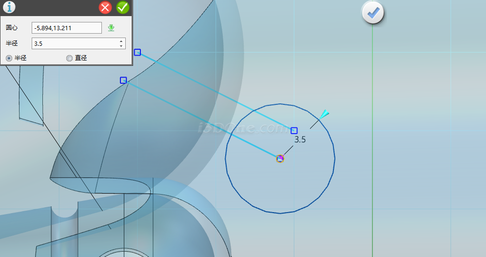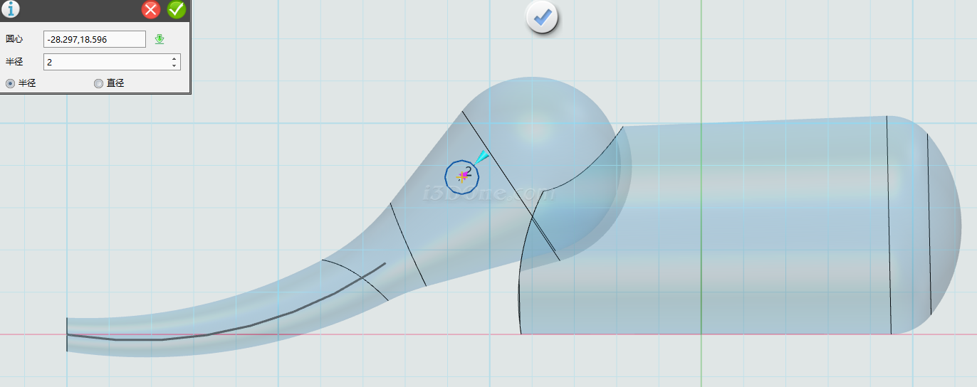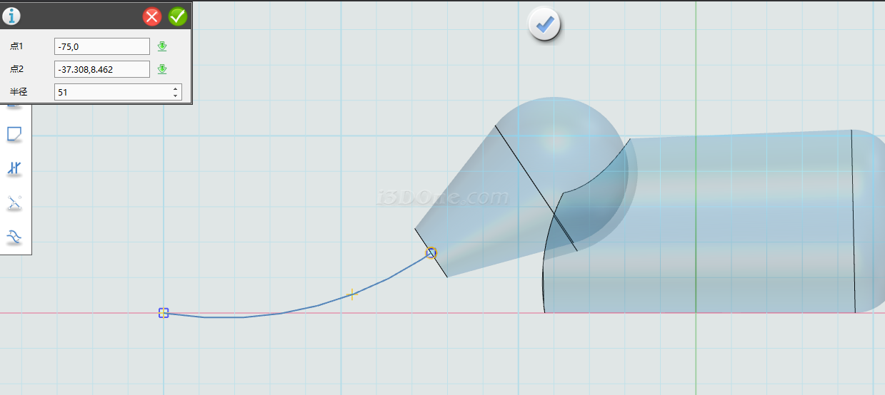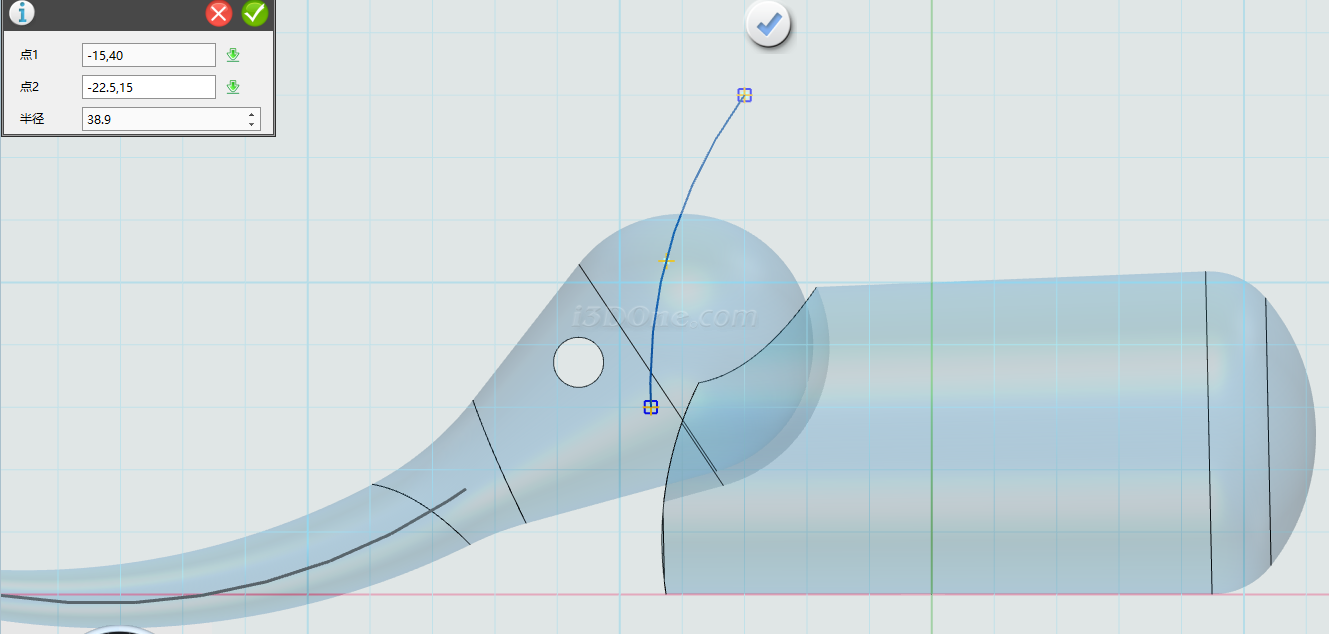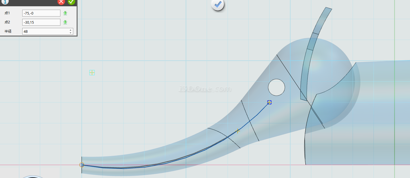 在草圖平面上繪制圖圖形,如圖繪制圓弧