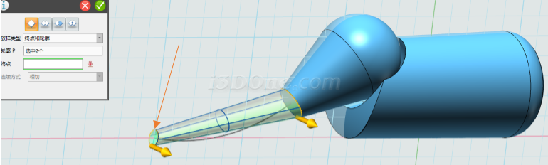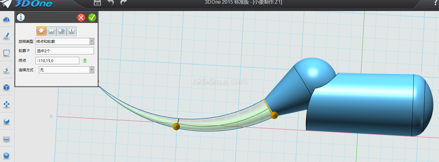 放樣類型選擇終點和輪廓,終點設為如圖,連續方式為無