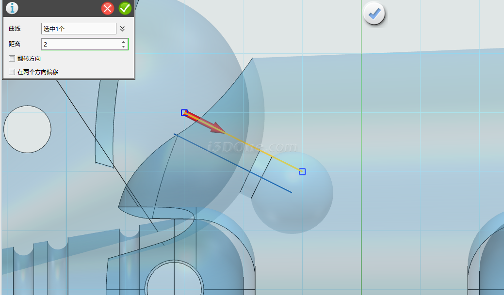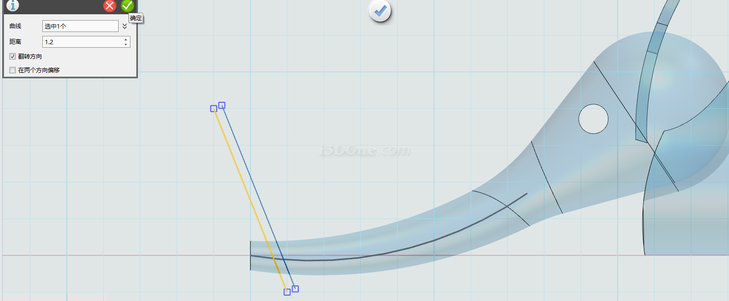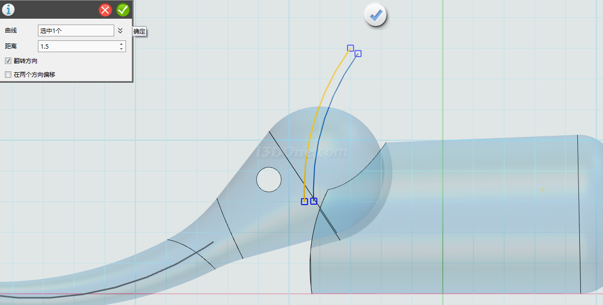 選擇偏移命令,偏移距離為1.5,方向如圖