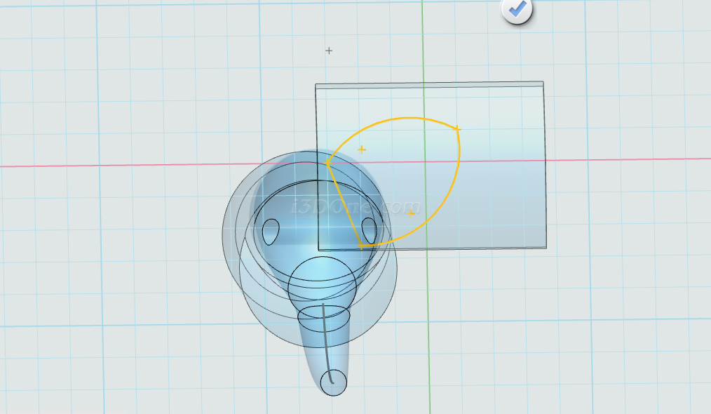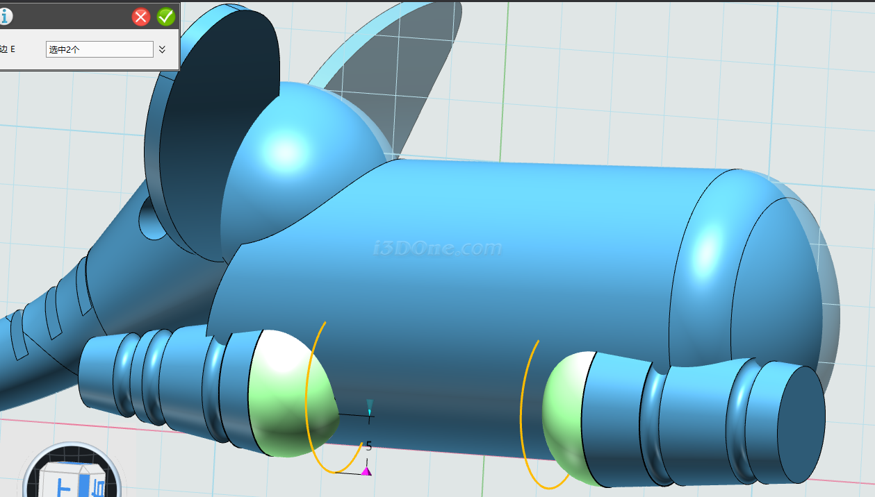 選擇圓弧命令,在耳朵所在面的近似中間位置繪制,如圖: