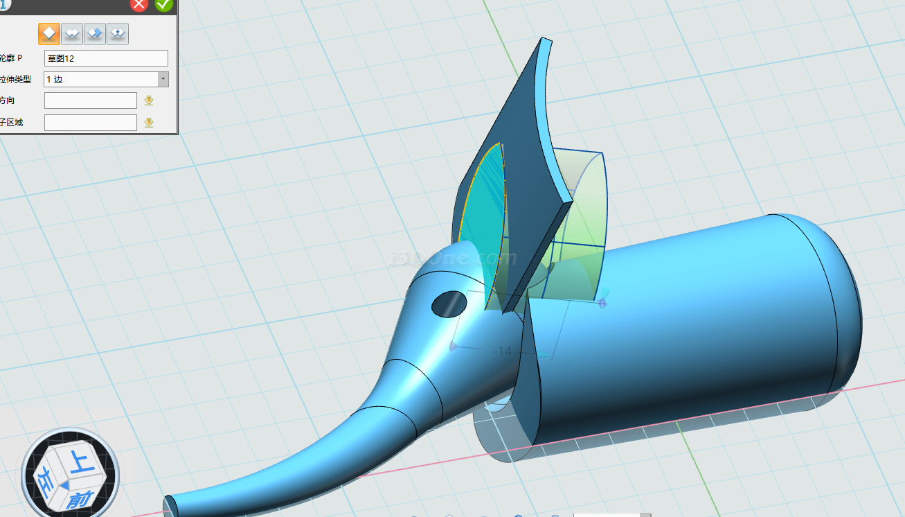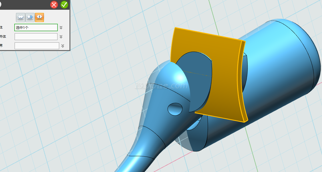 完成拉伸,選擇組合編輯命令,基體選擇如圖所示,