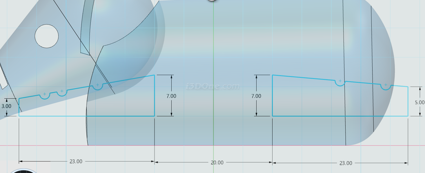 1、繪制身體。在網格平面上繪制身體的草圖,參照下圖尺寸