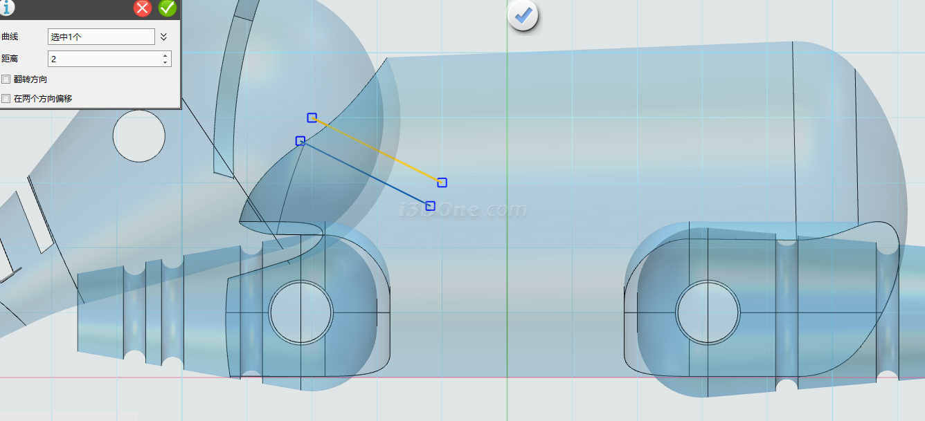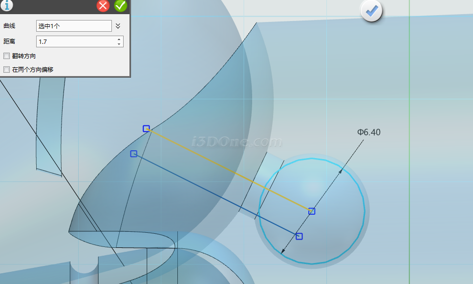 選擇偏移命令,偏移直線,偏移距離為1.7