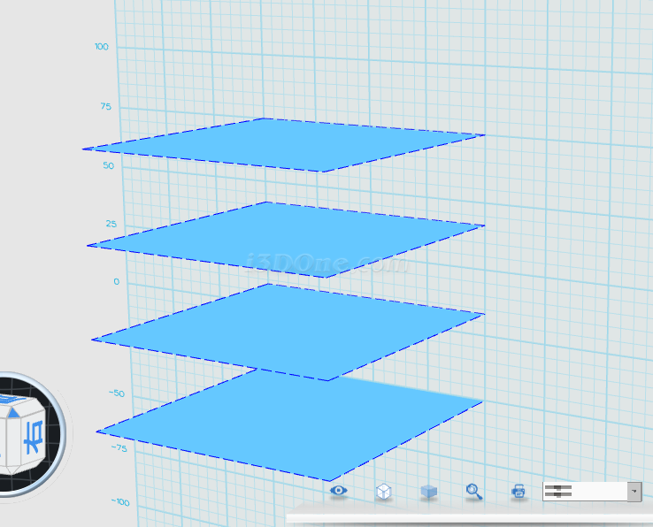 1、建立四個等距離平面,間距25,大小100*100。