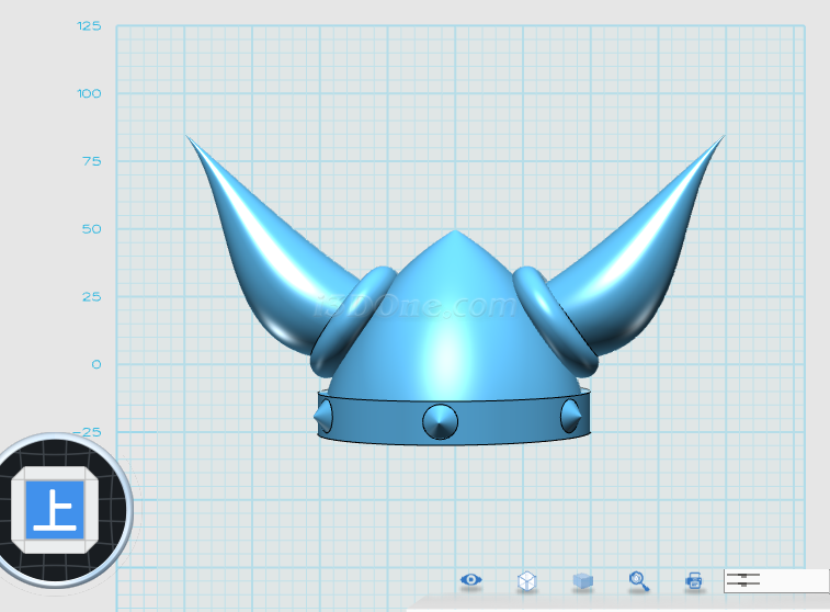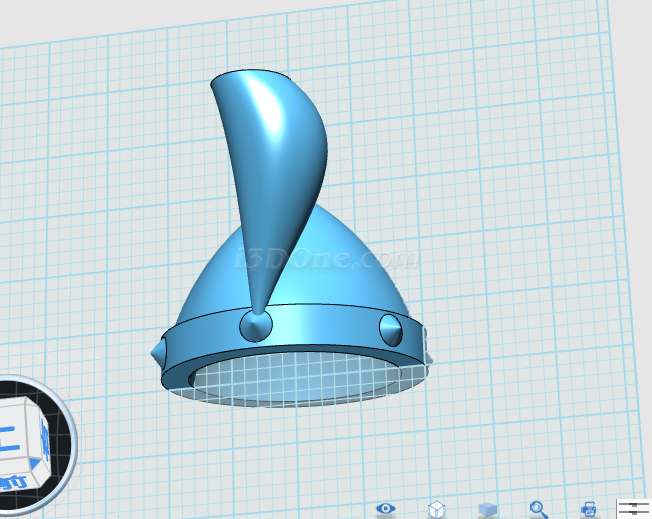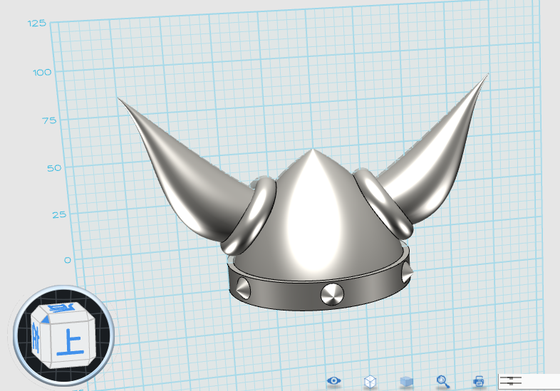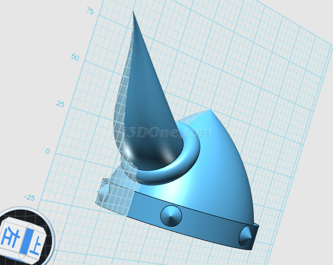 1、導入牛角.IGS文件,調整大小、角度、位置,如圖(注意頭盔內部不要露出牛角根部)。