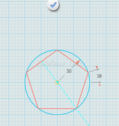 2、選擇“草圖繪制”中的“圓形”命令,圓心(0,0),半徑50,繪制一個圓,再選擇“草圖繪制”中的“正多邊形”命令,圓心(0,0),半徑50,邊數5,角度18,繪制一個正五邊形。