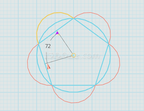 3、選取“草圖繪制”中的“圓弧”命令,以任意相鄰五邊形的兩個頂點為圓弧端點,半徑30(可以自行設定),然后以這段圓弧為基體進行圓形陣列,圓心(0,0),數目5,間距角度72,得到如下圖形。