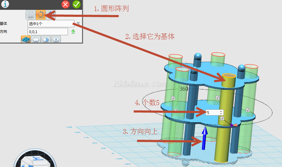 本著“復雜的造型簡單化,簡單的造型二維化”的設計思路,我們可以將支架分為兩個部分,一部分是支架的三個面板,另一部分是支架的三根柱子。三個面板我們可以先通過二維草圖拉伸形成,然后復制出其它兩個;三根柱子可以用基本實體堆疊而成,再用圓形陣列就可以輕松搞定。那就馬上與我一起行動,做一個屬于自己的牙膏牙刷支架吧。