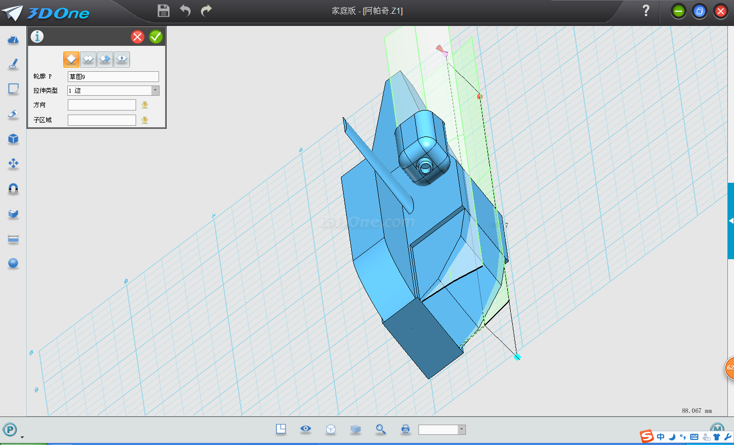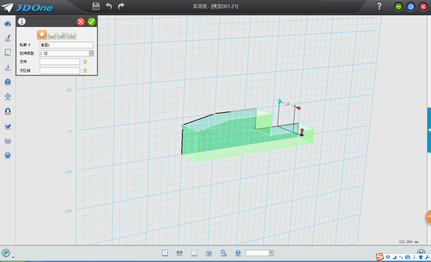 1.首先用草圖編輯畫出機身的大致輪廓,然后拉伸,輸入拉伸距離17。