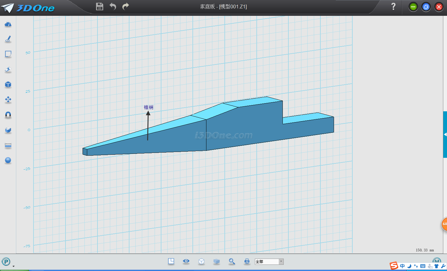 2.點擊拉伸,選擇左邊長方形,輸入拉伸距離80,再選擇錐銷命令,基準面選擇最左邊面,確定可得: