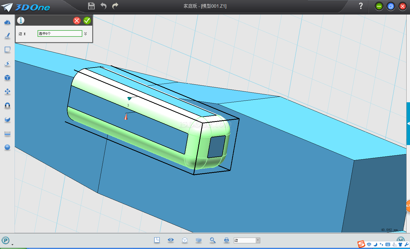 20.在倒角長方形后面加入一個六面體,利用組合編輯合并。