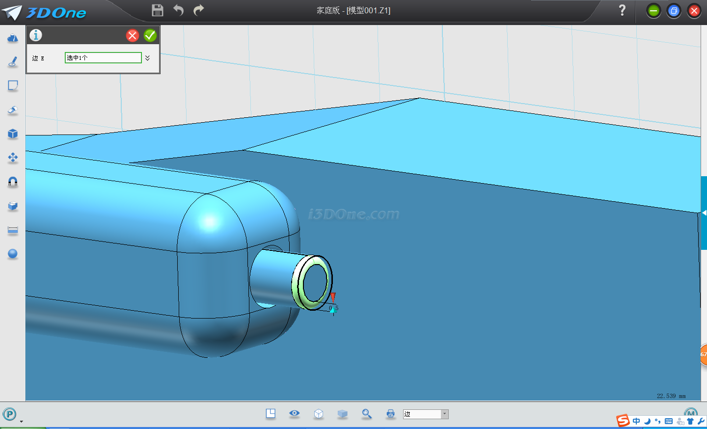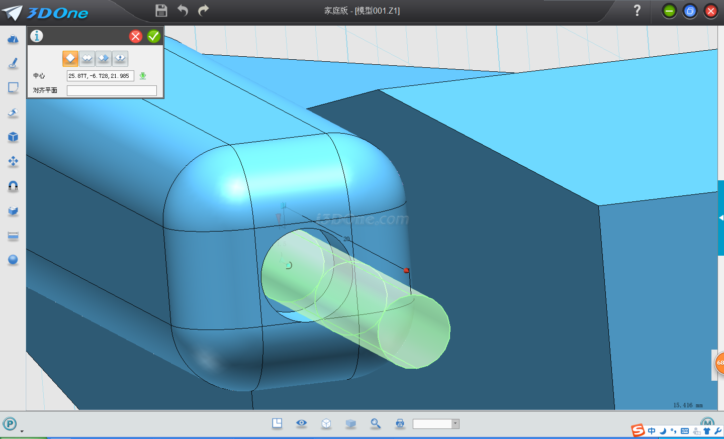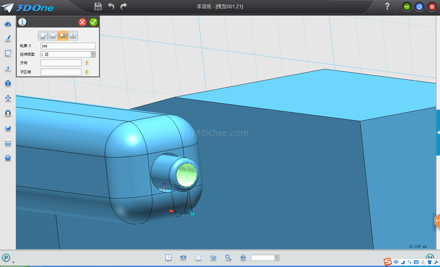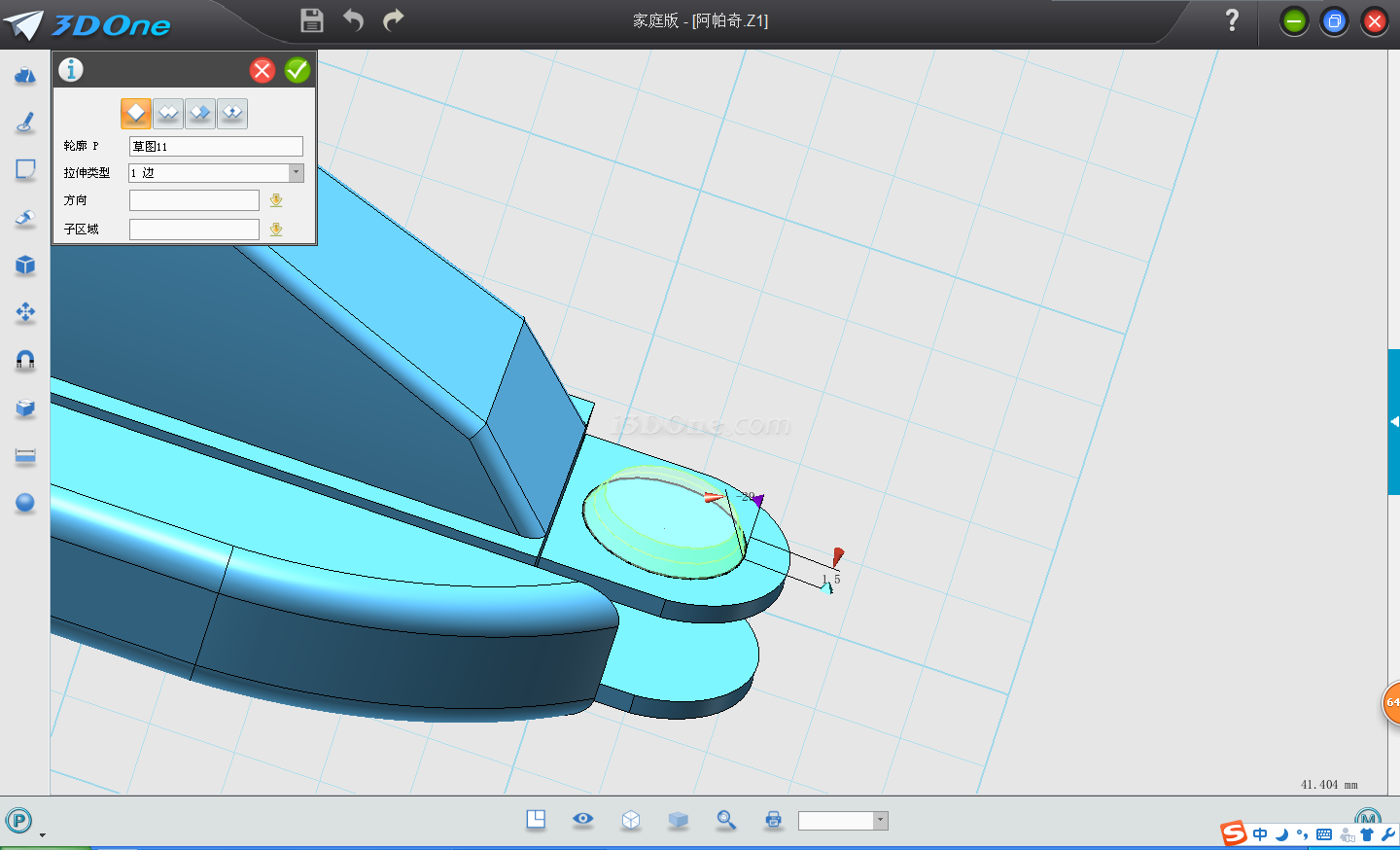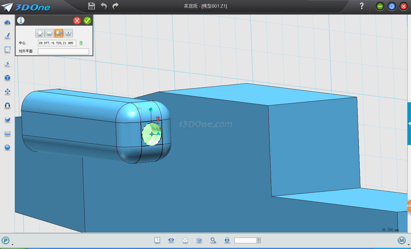 7.再點擊拉伸,選擇繪制圓柱的上表面,輸入距離3.35,點擊減運算。