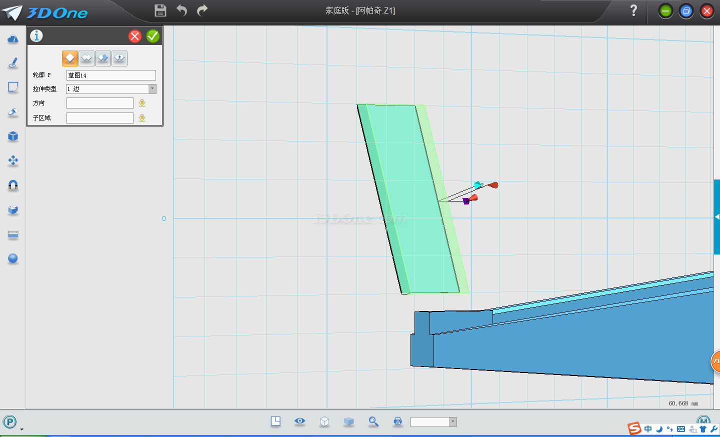 13.拉伸草圖,機翼就完成了。