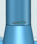 17. 然后在機身前面參考畫一個這樣的圖形,再拉伸。接著用抽殼命令,開放面選取側圓弧曲面。