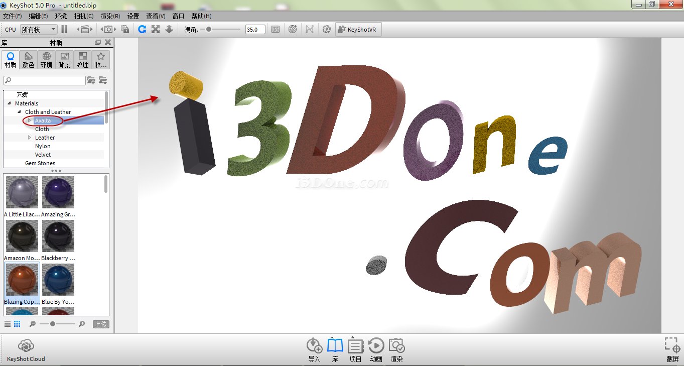 ●注意:將實體在3DOne軟件上渲染不同的顏色,導入KeyShot才能渲染不同顏色。