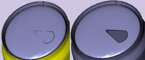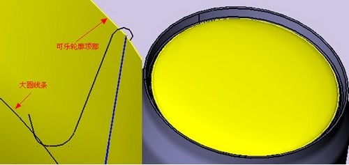 再在頂部畫出拉環的輪廓,選中該輪廓進行實體拉伸,用面修剪功能把拉環缺口修剪出來。