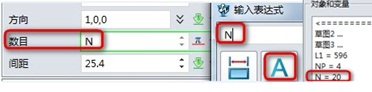 若需凹陷孔的個數跟隨長度的變化而改變,則可以修改變量參數,如下圖修改變量L1,則可以驅動凹陷孔橫向數值。