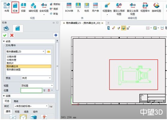 1.首先進入工程圖模塊,在操作窗口右鍵快捷菜單選擇2D工程圖