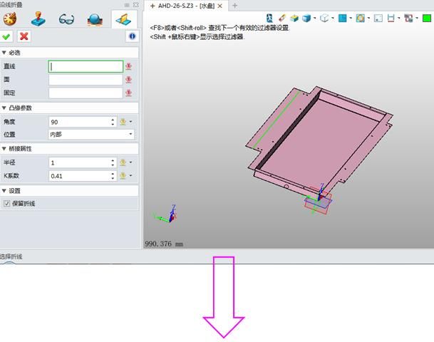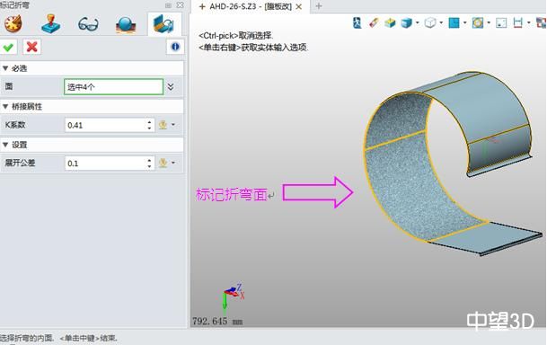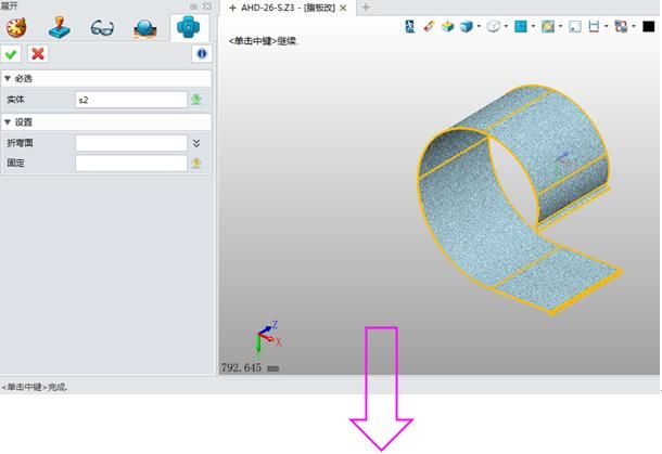 使用“標(biāo)記折彎”命令,對其進(jìn)行標(biāo)記折彎。