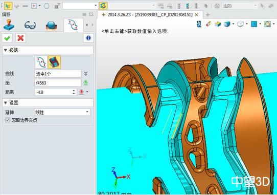 使用中望3D曲線里面的“偏移”功能,便可快速析取中間線,過程簡便高效。