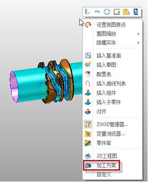 完成以上操作后,單擊右鍵進入中望3D的“加工方案”。