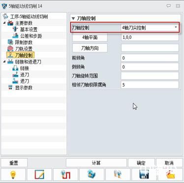 修改刀軌的主要參數,并將刀軌修改為“四軸加工”。