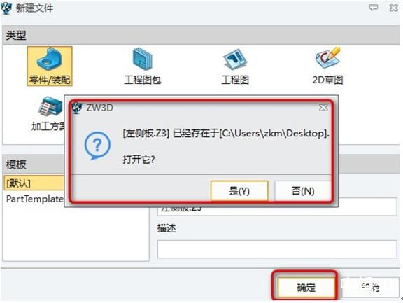 出現這種情況,主要是由于中望3D會自動搜索以前打開或建立過的圖檔以及命名。當新建名稱與以前名稱重復時,中望3D會發出“已存在”的提示,詢問用戶是否需要建立或打開它。當用戶選擇“是”,則打開以前的圖檔;當用戶選擇“否”,則圖檔創建不成功。