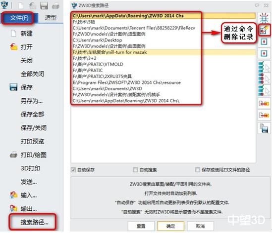 中望3D提示用戶已有同名零件的功能,在某些情況下能對設計師起到較好的警示作用,有其存在的意義。但在許多行業的產品設計過程中,設計師會按照不同產品款式對零件進行分類,導致不同“文件夾”下有同名零件存在。這種情況下,我們可以按照以下步驟操作,輕松化解難題:在中望3D軟件中,點擊文件----搜索路徑------彈出如右下對話框: