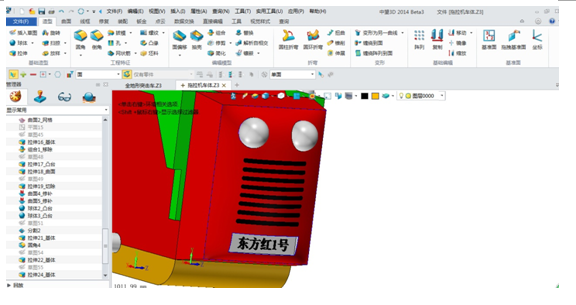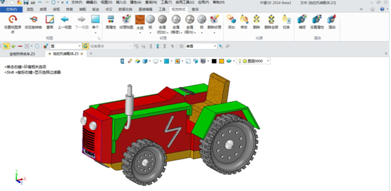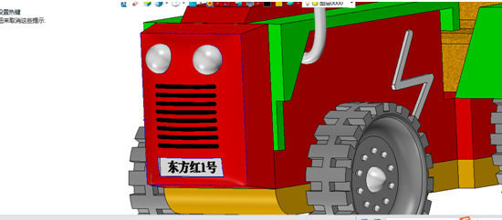 有了以上創(chuàng)新,我覺得這款霸氣的東方紅拖拉機在未來中國拖拉機領(lǐng)域肯定能占據(jù)大部分市場份額。而這一創(chuàng)意的實現(xiàn)與加工都要歸功于我的“小伙伴”——中望3D,正是在它的幫助下,我才完成了整個拖拉機的三維CAD建模。在這里我要特別提到一點,即中望3D強大的曲面建模能力與獨一無二的混合建模技術(shù),這兩點強大功能正好解決了設(shè)計這款作品的難點。