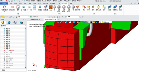 在設(shè)計拖拉機前部分的發(fā)動機外罩過程中,中望3D很好地體現(xiàn)了他的曲面建模優(yōu)勢。