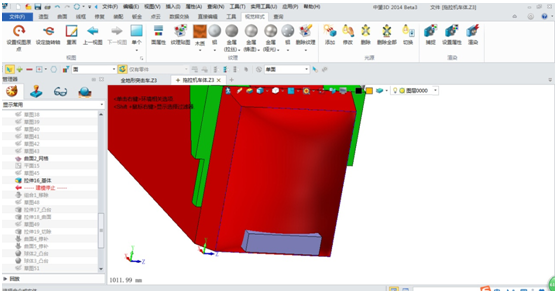 在這點問題上我力薦大家使用中望3D的混合建模功能,比如通過曲面與實體的減運算來完成曲面造型的改變,下邊我以該發(fā)動機艙外罩上的車牌造型為例,談一下它的混合建模能力: