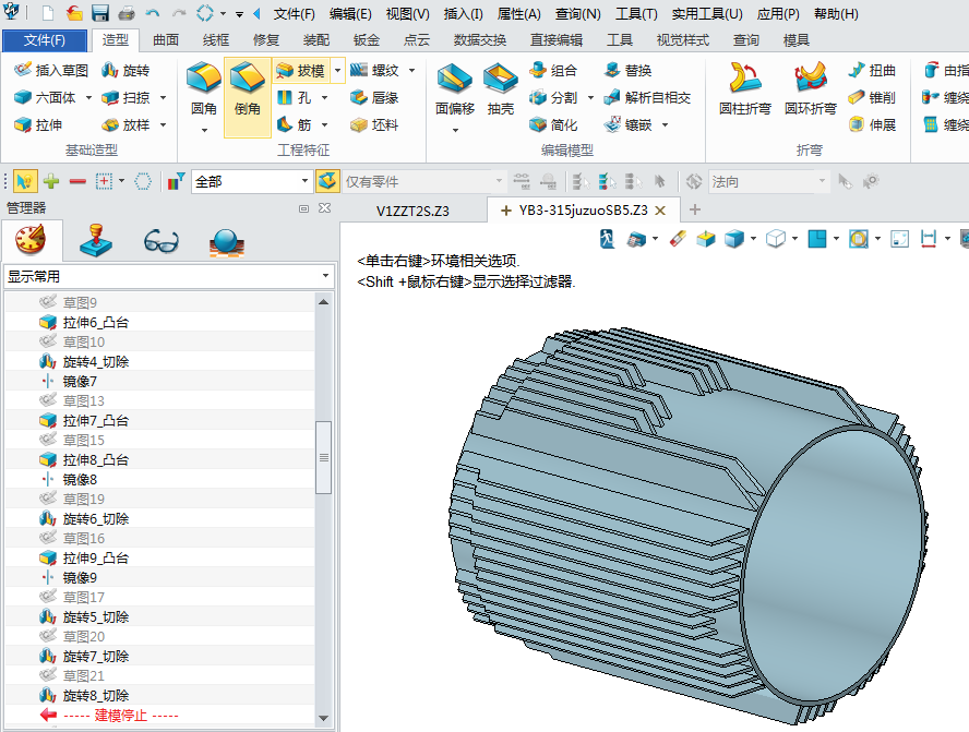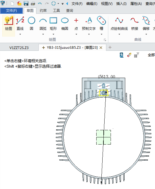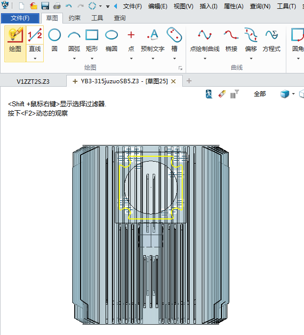2、繪制外殼的筋條,點擊草圖鍵,繪制筋條的線條,拉伸完成,如圖: