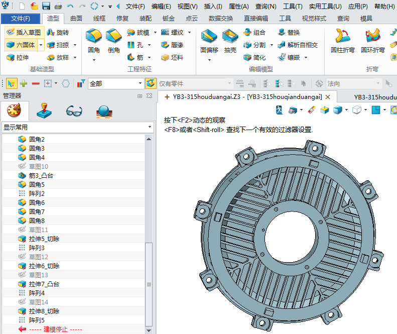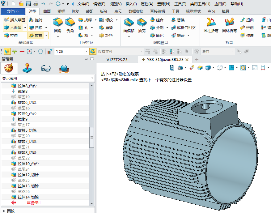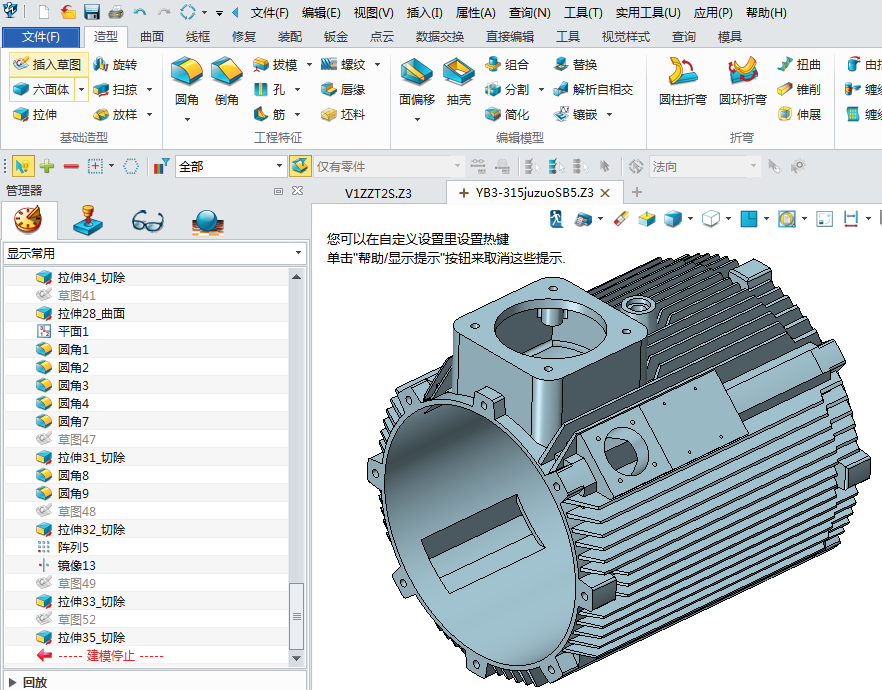 1、設計電機外殼,進入草圖繪制輪廓,拉伸外形,如圖: