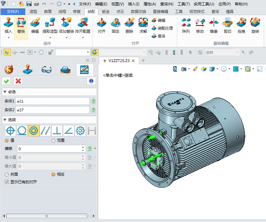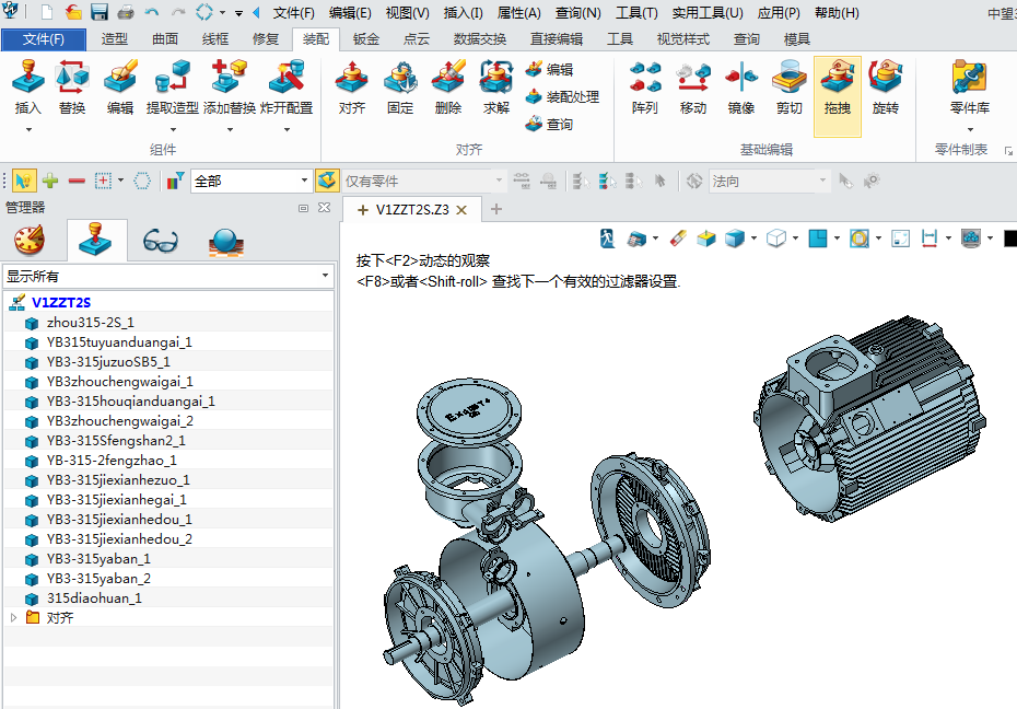 8、裝配電機的零件,點擊插入命令,對齊裝配電機的零件,并檢查干涉,如圖: