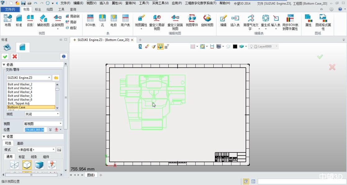 1、打開零件圖,進(jìn)入中望3D設(shè)計(jì)模塊,單擊右鍵進(jìn)入到中望3D的工程圖模塊。