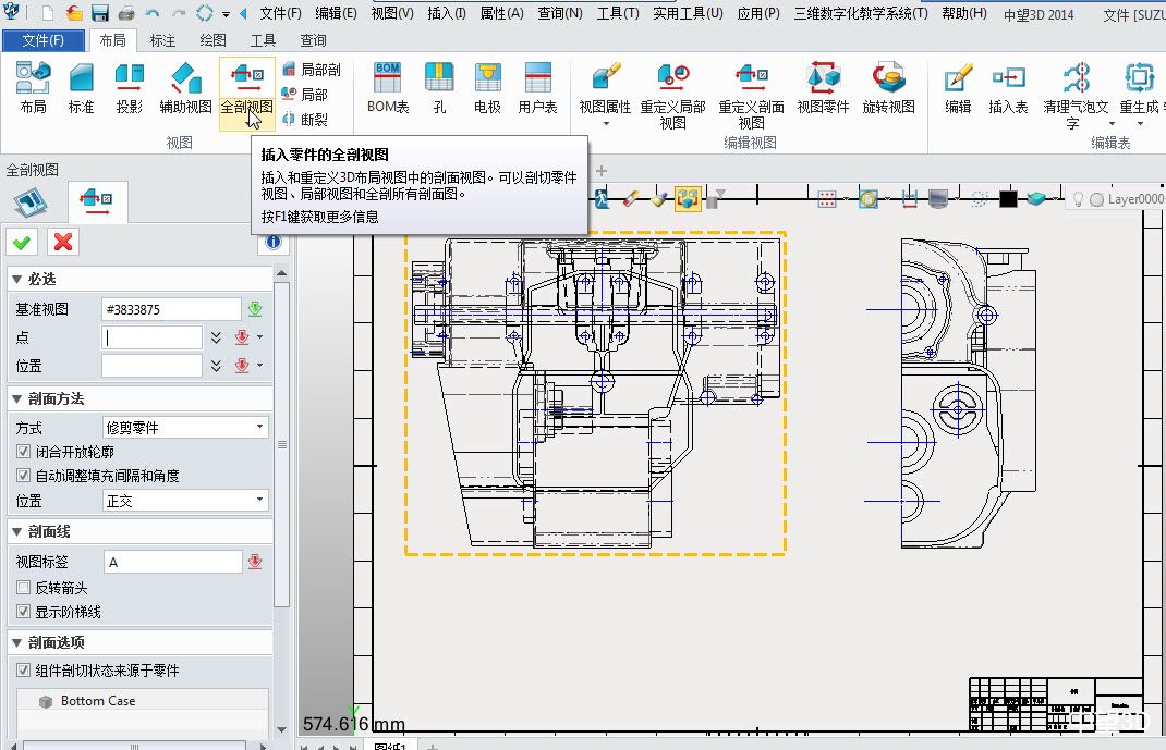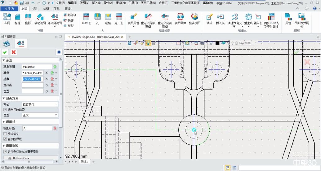 中望3D的便捷之處在于,可以輕松的修改剖視圖,這也是為了方便工程師修改圖紙而設(shè)計(jì)的,常見的操作如下所示:
