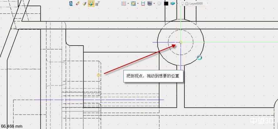 1、如果需要修改剖視點(diǎn)的位置,只需要激活選定點(diǎn),左鍵選擇,拖動(dòng)點(diǎn)到你需要的位置即可。