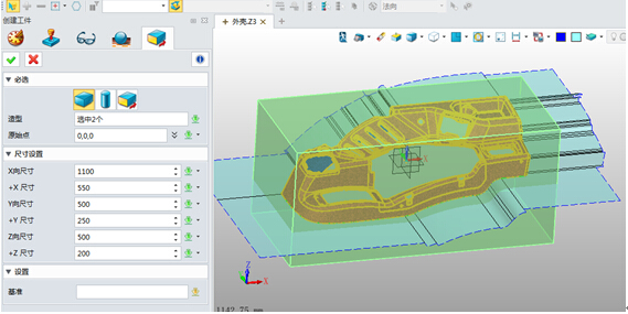 8.創建“工件”,即定義模仁的尺寸,如圖參數設置: