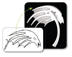 Kruse將圖片直接導(dǎo)入中望3D,直接二維圖紙快速創(chuàng)建三維模型,再?gòu)?fù)雜的藝術(shù)概念都能快速建模。與此同時(shí),Kruse還要考慮這個(gè)東西怎么更好的被應(yīng)用和安裝。例如,這個(gè)作品將被用于摩托車(chē)的空氣濾清器蓋子上,那么Kruse可以用中望3D提前設(shè)計(jì)出螺釘或螺栓的孔的加工位置,并設(shè)計(jì)好加工刀路,方便后期加工制作。