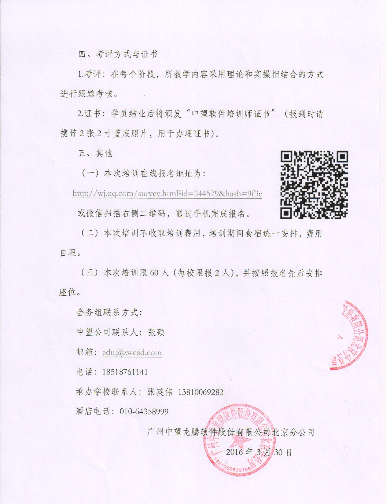 2. 證書:學員結業后將頒發“中望軟件培訓師證書”(報到時請攜帶2張2寸藍底照片,用于辦理證書)。