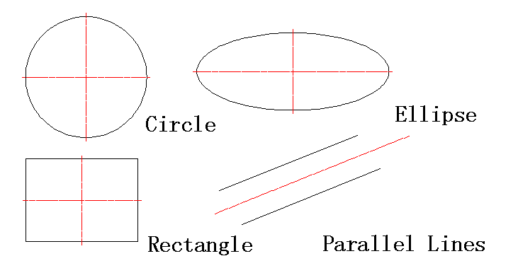 這個命令不僅可以繪制圓的中心線,還可以繪制矩形、橢圓以及平行線的中心線。設計師只需選擇好對象,軟件就會自動顯示出其中心線。