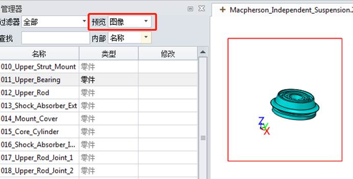 答:可以將“預覽”切換成圖像,能直觀看到點擊的零件長什么樣子。