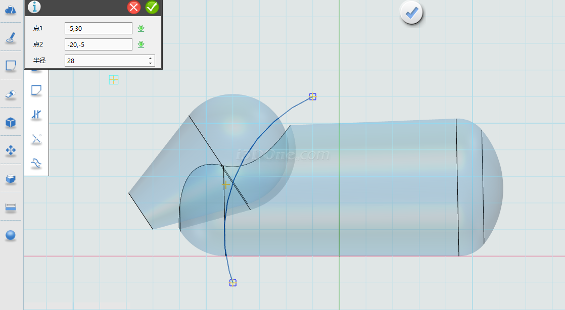 在草圖平面上繪制圖圖形,如圖繪制圓弧