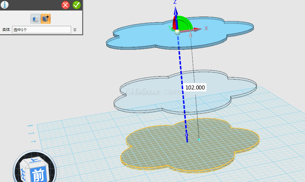 6、按照第4步的方法,再復制出一個相同的實體,向上移動102mm,如下圖所示,確定后退出。