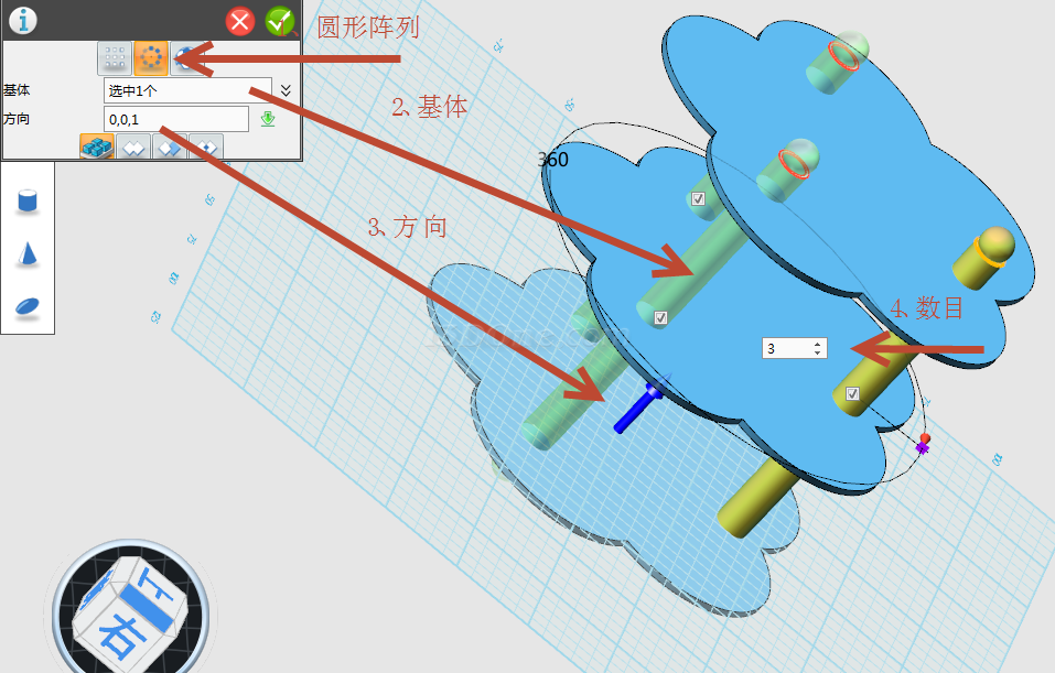 本著“復雜的造型簡單化,簡單的造型二維化”的設計思路,我們可以將支架分為兩個部分,一部分是支架的三個面板,另一部分是支架的三根柱子。三個面板我們可以先通過二維草圖拉伸形成,然后復制出其它兩個;三根柱子可以用基本實體堆疊而成,再用圓形陣列就可以輕松搞定。那就馬上與我一起行動,做一個屬于自己的牙膏牙刷支架吧。