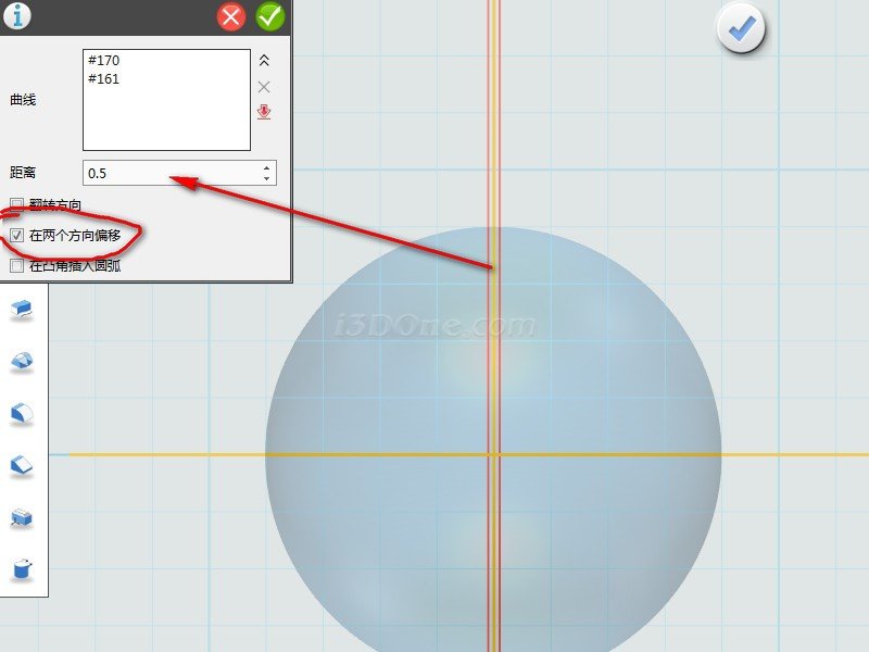 6.同理新增兩個草圖橢圓,分別進行偏移,如下圖。